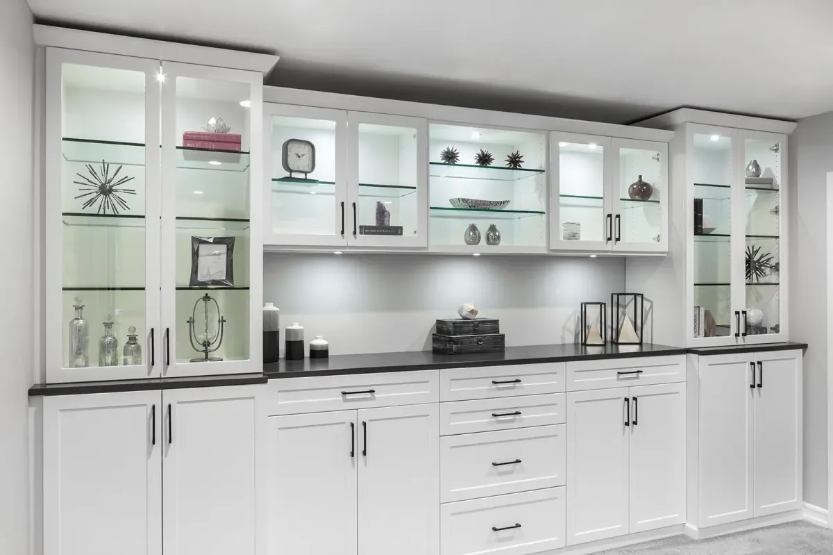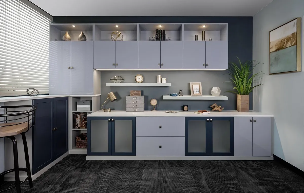 Work smarter from home with built-in desks, shelving, and cabinetry that keep everything within reach, designed to look great and stay organized.