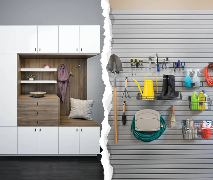 Turn your garage into a clean, functional workspace with durable cabinets, slatwalls, overhead racks, and Swisstrax flooring. Every tool, bike, and box has a place.